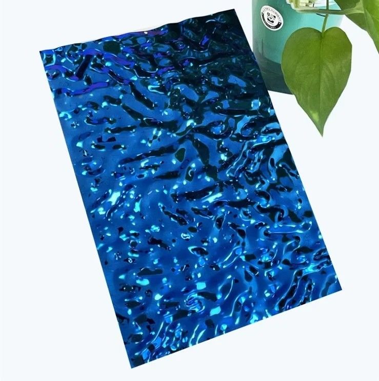 Sapphire Blue Small Stainless Steel Water Ripple Sheet jest materiałem dekoracyjnym, małym papierem wodnym ze stali nierdzewnej o niebieskim wyglądzie.Ten materiał jest zwykle używany do dekoracji i projektowania przedmiotów, a jego wygląd może dać ludziom efekt fal wodnych, a jednocześnie przedstawia safir-podobne kolory.